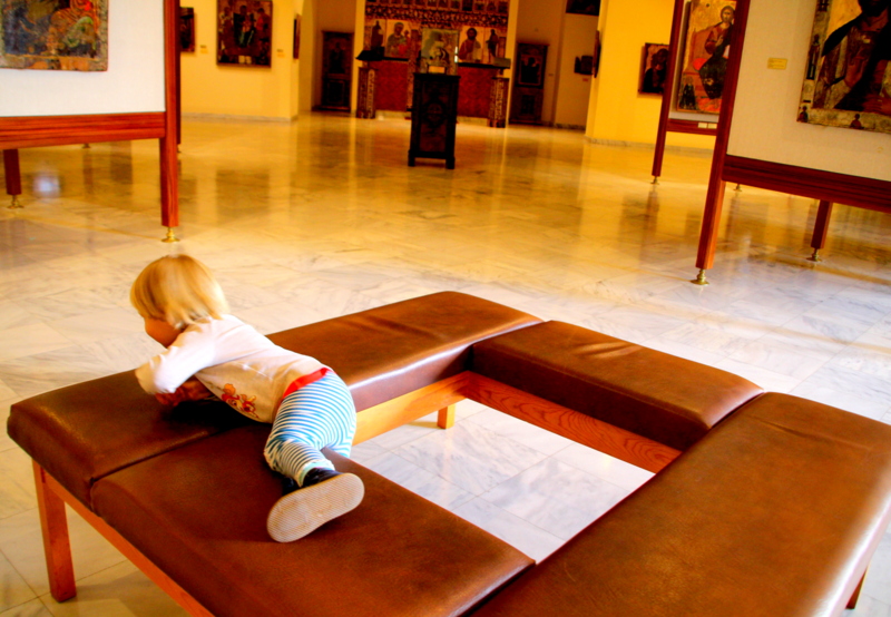 Wiem, wiem, dla większości ciąganie dziecino muzeach to barbarzyństwo i strata czasu. Cóż zależy dużo od muzeów i sposobu ich zwiedzania a także samych rodziców. Na Cyprze pracownicy muzeów są pomocni, tolerancyjni, nie oburzają się niekonwencjonalne zwiedzanie w wykonaniu dzieci – podskoki, krzyki, poświęcanie uwagi niekoniecznie najważniejszym – według dorosłych – eksponatom. A dzieci naprawdę potrafią z uwagą oglądać nawet ikony i obrazy religijne – wypatrują na nich żywych kolorów, twarzy, zwierząt.