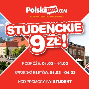 Od dzisiaj do 14 marca studenci mogą jeździć autobusami na trasie Kraków – Rzeszów za 9 zł.