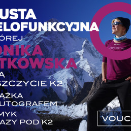 Chusta wielofunkcyjna, w której Monika Witkowska była na szczycie K2, jej książka z autografem oraz…
