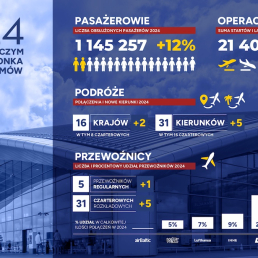 Dokładnie 1 145 257 pasażerów obsłużyło w 2024 roku lotnisko w podrzeszowskiej Jasionce. To był…