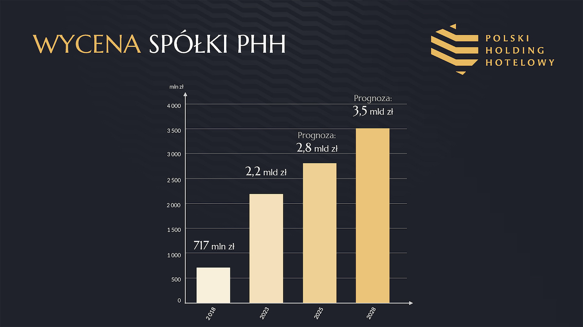 Od momentu powstania Polskiego Holdingu Hotelowego, pomimo kryzysu covidowego, spółka trzykrotnie zwiększyła swoją wartość. W 2018 roku wycena PHH wynosiła 717 mln zł, a dzisiaj wzrosła do 2,2 mld zł. Natomiast wraz z realizowaną strategią rozwoju całej Grupy PHH i planowanym zakończeniem wszystkich trwających prac modernizacyjnych w 2028 roku wartość spółki wzrośnie do 3,5 mld zł. Dobra sytuacja finansowa spółki ma też znaczenie przy wsparciu projektu Centralnego Portu Komunikacyjnego.
