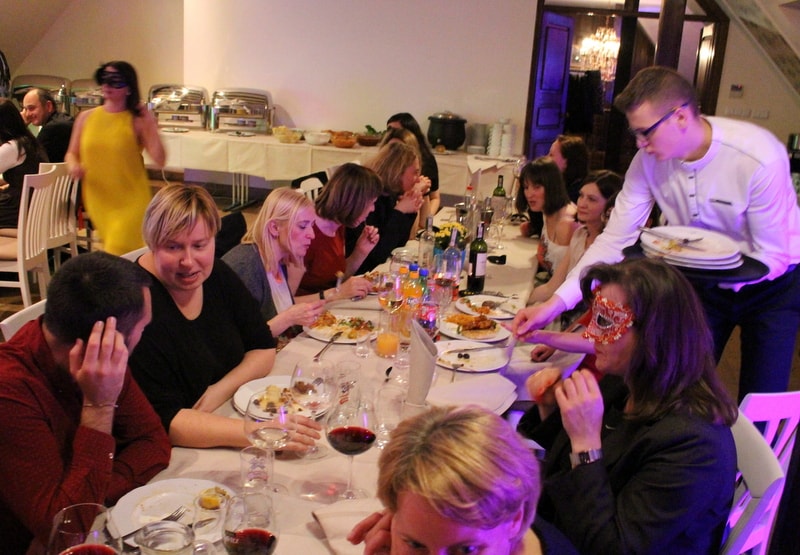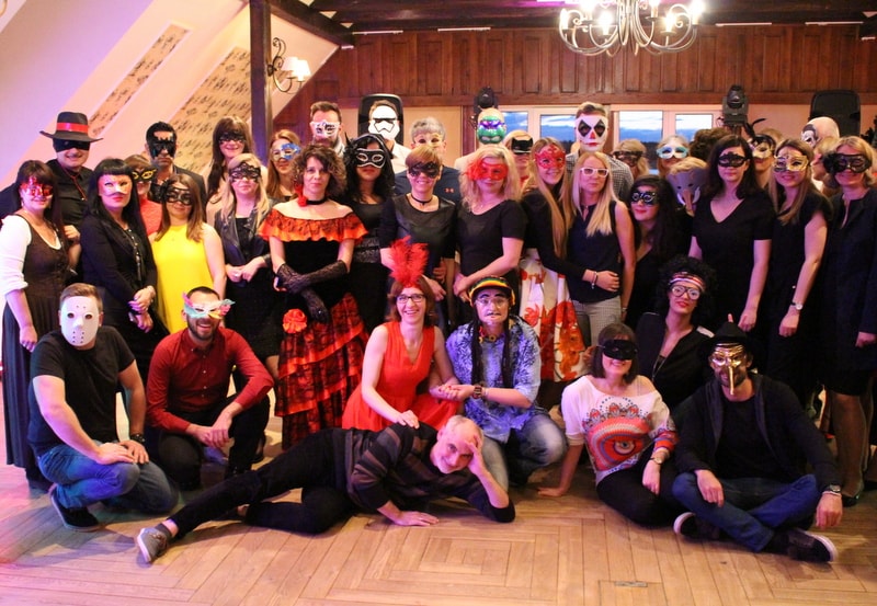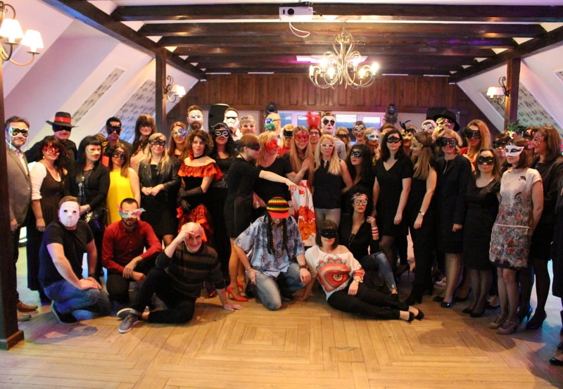 Ponad 60 osób (większość w maskach) bawiło się na balu maskowym zorganizowanym przez biuro Neckermann Podróże dla swoich najlepszych partnerów w hotelu Jabłoń Lake.