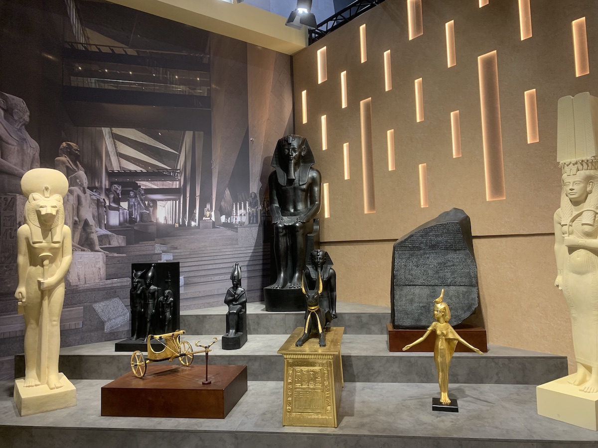 Samo stoisko Egiptu robiło ogromne wrażenie. Ekspozycja nawiązywała do otwartego w zeszłym roku Wielkiego Muzeum Egipskiego i podkreślała bogactwo dziedzictwa kulturowego kraju. Wśród eksponatów znalazły się repliki egipskiej biżuterii, figurki bóstw, a także repliki mumii i głowy Tutanchamona. Prawdziwą atrakcją był również pokaz pisma hieroglificznego na żywo.
