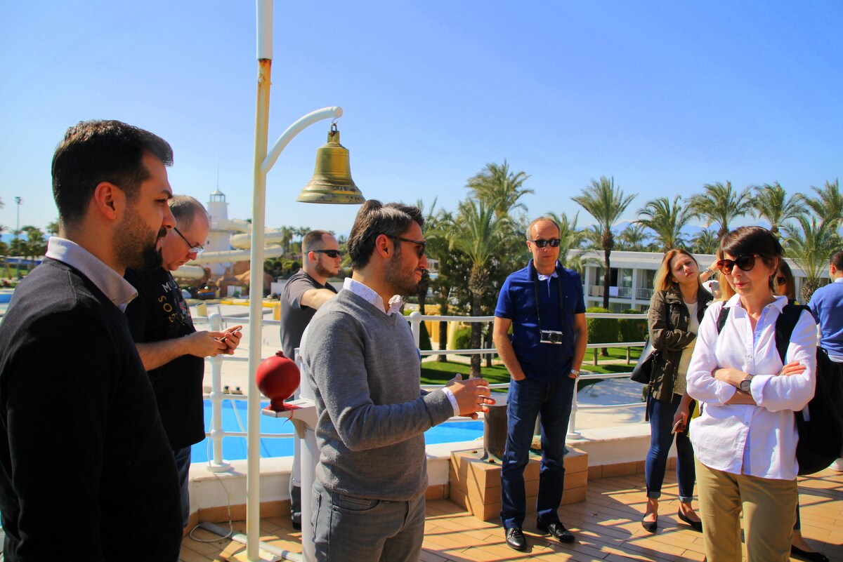 Poza hotelem też oczywiście było intensywnie. Po pierwszym dniu (czytaj TUTAJ), drugiego dnia uczestnicy VIP FAM TRIPIE mogli obejrzeć kilka hoteli, z którymi współpracują linie Corendon i pole golfowe. Pogoda wciąż dopisywała, gospodarze hotele nie przemęczali gości zwiedzaniem wszystkich możliwych rodzajów pokoi. Potem był lunch a następnie grupa pojechała do centrum Antalyi. Tam spacer po starówce i porcie a potem czas wolny. Dzień zakończył się kolacją w restauracji rybnej w porcie, w którym uczestniczyła mocna reprezentacji Corendona. Z wysłuchanych i podsłuchanych rozmów, wynika że uczestników wyjazdu ten fragment Turcji, którzy poznali, zachwycił. Jest nadzieja, że będą