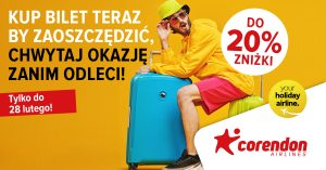 „Promocja Wczesnej Rezerwacji” linii lotniczych Corendon Airlines ze względu na duże zainteresowanie została przedłużona. Zakupione bilety na loty realizowane w terminie od 1 kwietnia do 31 października 2022 roku gwarantują zniżki dochodzące do 20 proc.