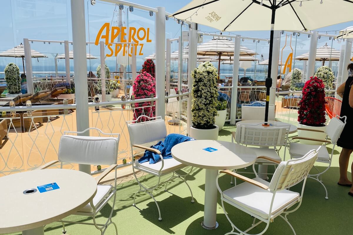 Wisienką na torcie jest położony na 15. Pokładzie Aperol Spritz Bar, wyspecjalizowany w tym popularnym drinku, ale dysponujący też innym asortymentem. Można tu przyjemnie spędzić popołudnie, na leżaku, przy stoliku bądź w strefie relaksu.