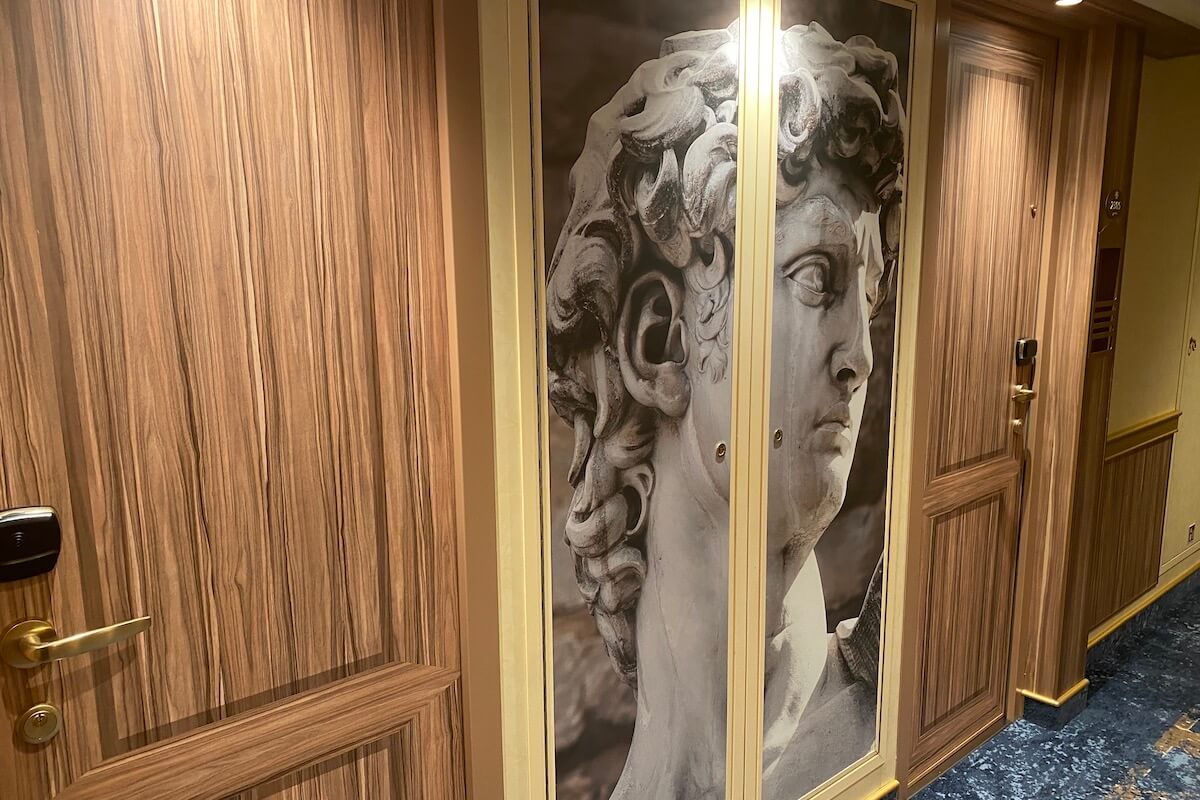 Po przekroczeniu trapu, a właściwie pokaźnej rampy prowadzącej z terminala portowego na pokład, znajdujemy się w innym świecie. Statek zaprojektowano tak, by każdy z jego elementów przypominał o Florencji. W drodze do kajut towarzyszą nam wizerunki Dawida Michała Anioła, w kabinach znajdziemy również florenckie pejzaże. Pojawiają się one również na klatkach schodowych. Nazwy restauracji, jak np. dei Medici, wystrój atrium zaprojektowanego tak by przypominać skwer Piazza della Signoria, wszystko ma przenosić nas wprost do serca Toskanii.