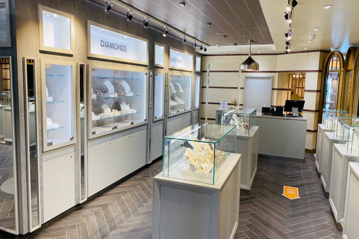 Na statku nie brakuje również luksusowych sklepów, skoncentrowanych w galerii zakupowej. Podczas rejsu można zaopatrzyć się w nową biżuterię, zegarek czy torebkę znanych marek.