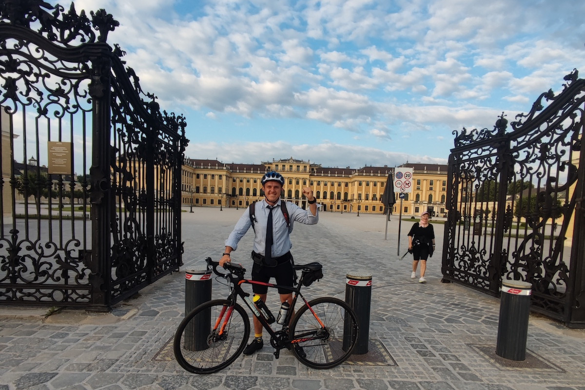 Dyrektor ZOPOT pokonuje 445 km rowerem z Wiednia do Krakowa. W tle promocja Polski