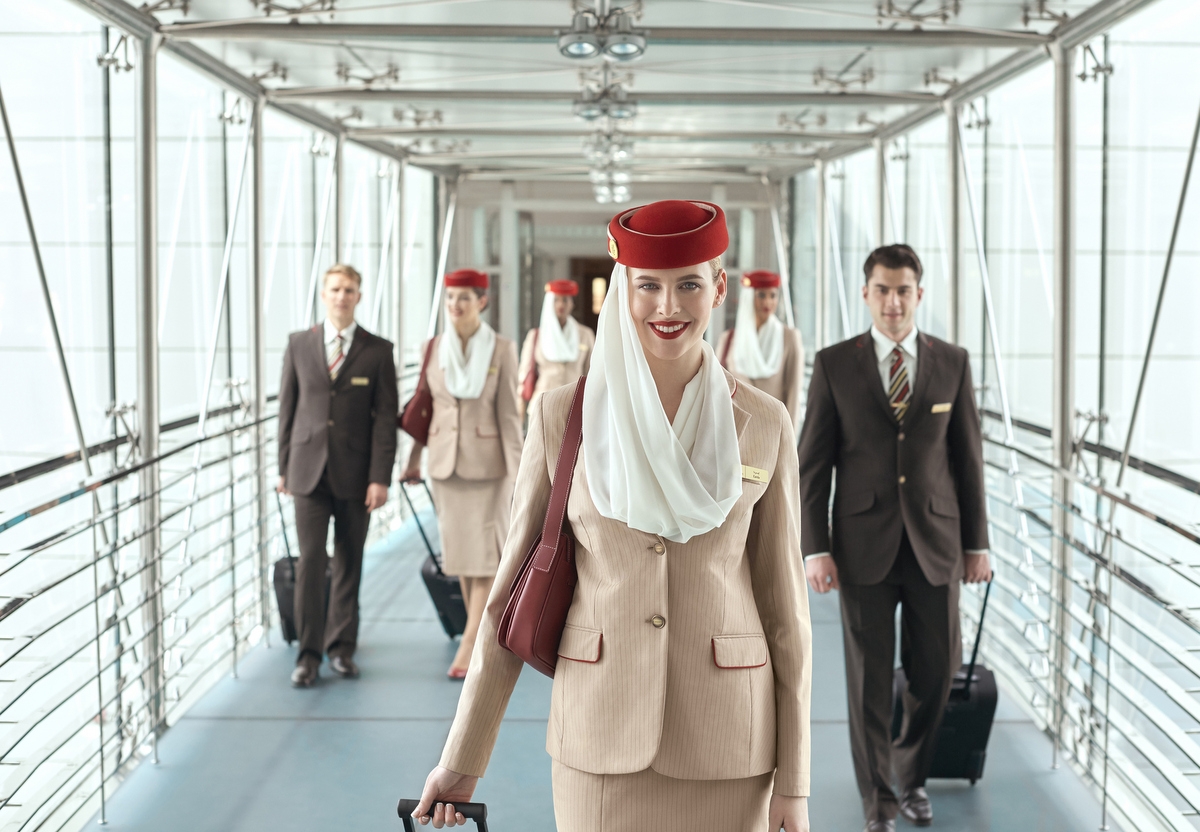 Emirates zatrudniają międzynarodową załogę pokładową, która składa się z ponad 135 narodowości mówiących w ponad 60 językach, w tym ponad 700 Polaków. Personel pokładowy otrzymuje cały pakiet benefitów w ramach zatrudnienia, który obejmuje różne korzyści takie jak bezpłatne, w pełni umeblowane zakwaterowanie w Dubaju o wysokim standardzie, bezpłatny transport do/z pracy, ubezpieczenie medyczne i dentystyczne, a także ekskluzywne zniżki na zakupy i zajęcia rekreacyjne w Dubaju. Dla wielu pracowników Emirates oferuje korzystne zniżki na bilety lotnicze zarówno dla personelu pokładowego, jak i ich rodzin i przyjaciół. Jest to niezwykle korzystna forma rekompensaty, biorąc pod uwagę fakt, że rozwijająca się globalna sieć
