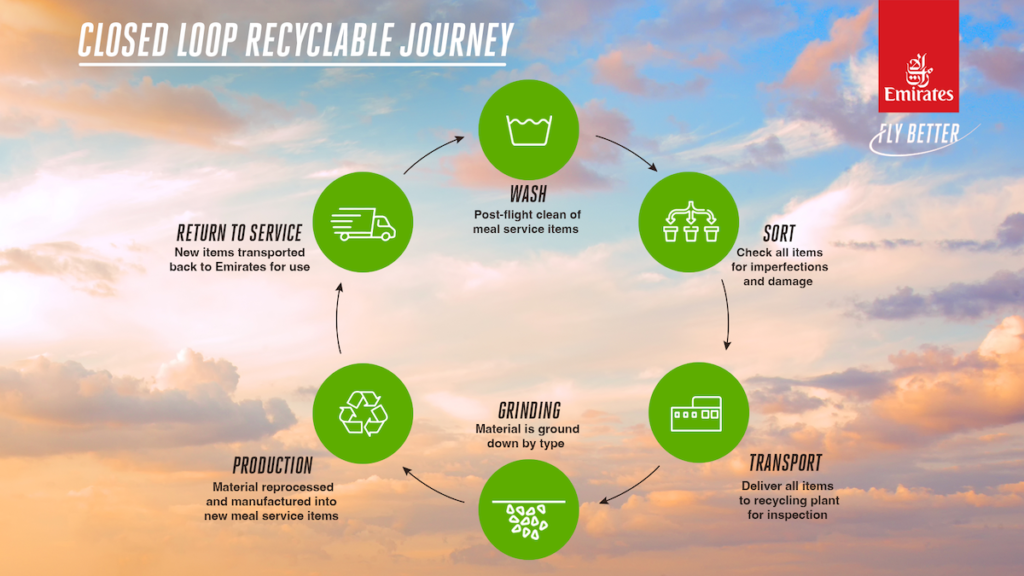 Emirates ogłosił nową inicjatywę recyklingu w obiegu zamkniętym, która ma na celu zmniejszenie ilości plastiku na pokładzie samolotów. Od teraz miliony plastikowych przedmiotów pokładowych, takich jak tacki, miski i pojemniki na przekąski, będą poddawane recyklingowi i ponownie wykorzystywane do produkcji nowego wyposażenia gastronomicznego.