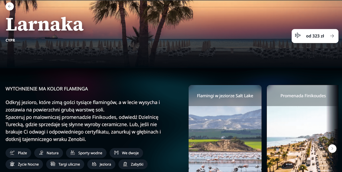 „Mylące jest założenie, że użytkownik zawsze wie, gdzie chce pojechać. Za to na pewno wie, jak chce ten wyjazd przeżyć, ale to właśnie aspekt inspiracyjny portali podróżniczych jest piętą achillesową branży. Dlatego wraz z zespołem eSky zrobiliśmy duży nacisk na zrozumienie, co wpływa na decyzje wyjazdowe, jak ludzie wybierają kierunki dla krótkich city breaków, a jak dla planowanych z wyprzedzeniem wakacji. I postaraliśmy się umieścić te informacje w możliwie syntetyczny i wygodny sposób” – tłumaczy Igor Farafonow, CEO design studia Uxeria wspierającego eSky.pl w zaprojektowaniu strefy okazje.
