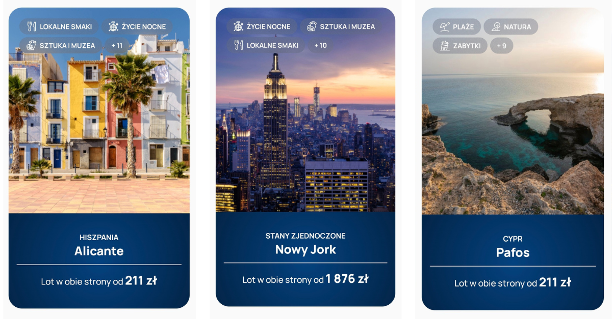 W pierwszej odsłonie App Deals prezentowane są kierunki takie jak Cypr, Hiszpania i Stany Zjednoczone. Funkcja obejmuje propozycje zarówno krótkich wyjazdów, jak i dłuższych wakacji, w tym dostęp do ofert lotów i przygotowanych przez ekspertów inspiracji podróżniczych.