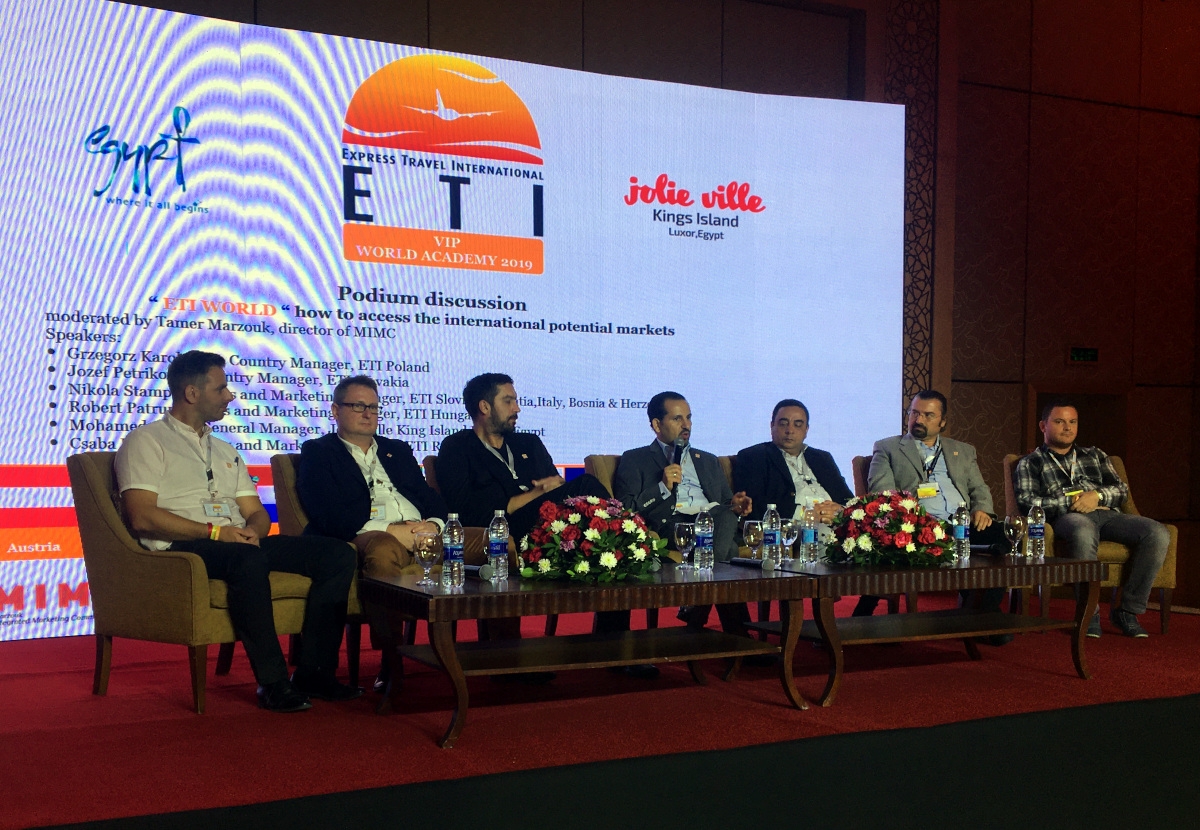 Prowadzący pierwszą z konferencji Tamer Marzouk, odpowiedzialny w ETI za marketing i PR, przypomniał, że w portfelu ETI znajdują się takie marki jak Red Sea Hotels, Cairo Express Travel i Grand Cruises. ETI zaczęło w 1998 w Niemczech, jest teraz obecne także w Wielkiej Brytanii, Austrii, Rumunii, Węgrzech, Polsce, Włoszech, Czechach, Słowacji, Słowenii i Polsce.