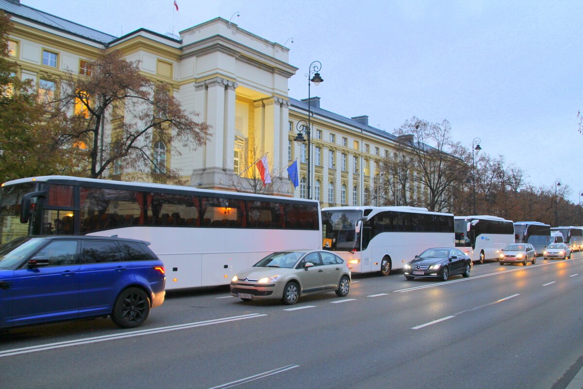 „Autokary umierają na COVID-19”. W centrum Warszawy protestuje 400 pojazdów