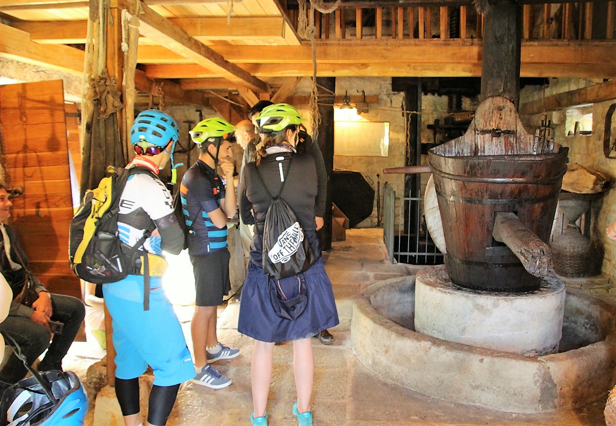 Muzeum jest kameralne, wchodzimy do niego za darmo i wysłuchujemy opowieści przewodnika, który objaśnia, jak działała prasa oliwna przed wiekami, pokazuje zabytkowy sprzęt, wyjaśnia, jak oliwa była tłoczona, przechowywana, transportowana. A potem wskazuje na stojącą z boku nowoczesną prasę – wykonującą wszystkie czynności, do których niegdyś trzeba było zaprząc urządzenia zajmujące cały dom. A teraz – wrzucasz oliwki, wychodzi oliwa. Którą można zresztą nabyć na miejscu, podobnie jak same oliwki.