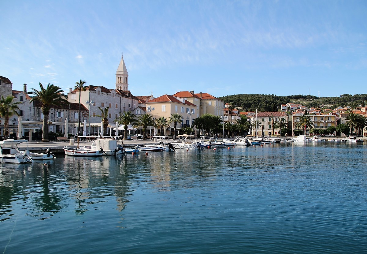 Niestety jedyne sensowne połączenie promowe z Hvaru, pozwalające dotrzeć na Brač na tyle wcześnie, żeby przejechać zaplanowaną trasę, jest o 7:00 rano. Śniadanie warto więc zjeść już w Bol – tutejsza promenada nadmorska zachęca, by usiąść przy kawie i podziwiać lazurowe przebłyski Adriatyku. W miejscowości tej znajduje się Złoty Róg, jedna z najpiękniejszych i najsłynniejszych plaż Chorwacji. Miasto Bol ma zresztą długą i bogatą historię, założone zostało jeszcze w czasach rzymskich.