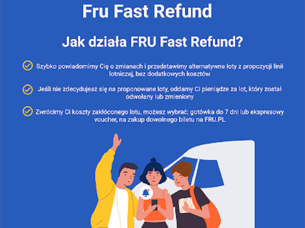 Fast Refund ma działać już w ciągu 7 dni, od jego aktywacji. Fru.pl ma oferować klientowi zarówno zwrot gotówki, jak i vouchery na rezerwacje przelotów dowolną linią. Można się spodziewać, że ta druga możliwość będzie opcją preferowaną, jej zaletą jest brak ograniczenia do jednego przewoźnika, jak to ma miejsce przy voucherze oferowanym bezpośrednio przez konkretną linię.