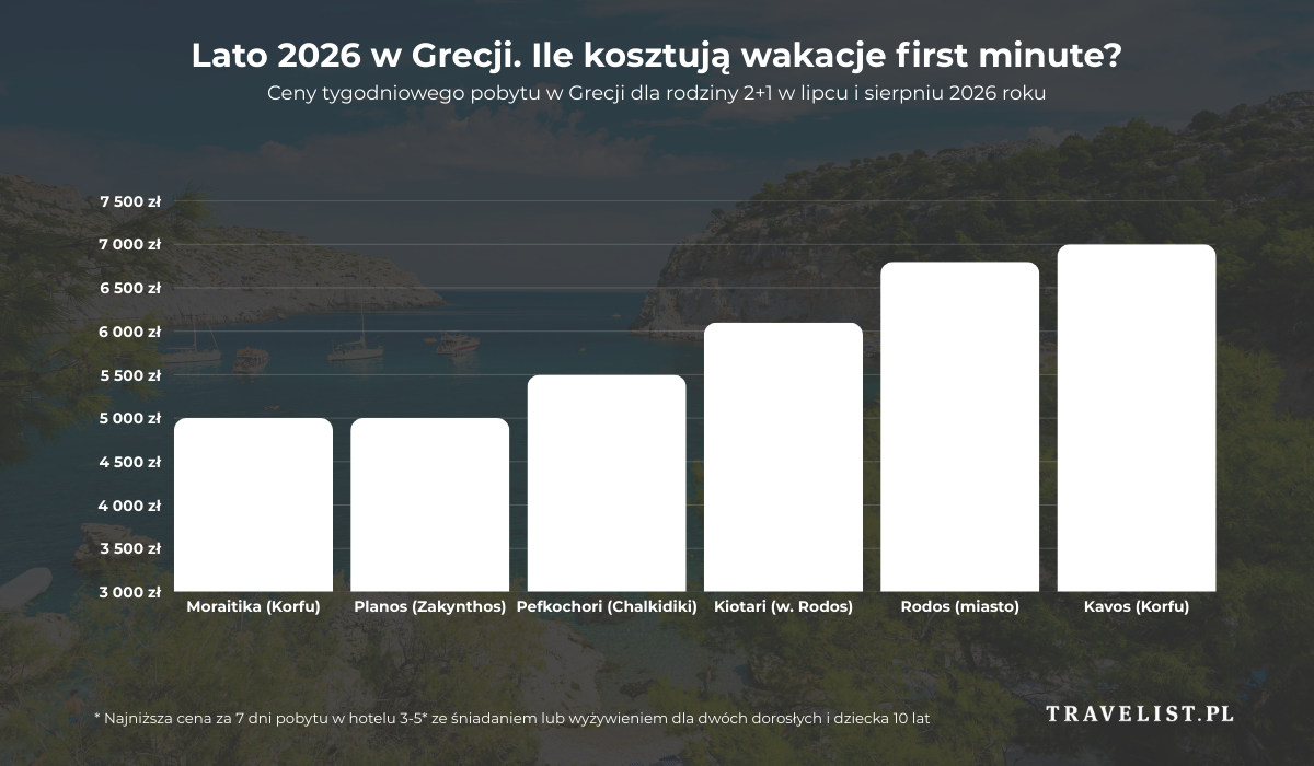 Latem w Grecji rodziny najchętniej wybierają wyspy, które gwarantują przewidywalną pogodę, dobre hotele i krótkie transfery z lotnisk. Na Korfu największą popularnością cieszą się Moraitika i Kavos. Moraitika to spokojna miejscowość przy plaży, idealna dla rodzin z dziećmi, natomiast Kavos, mimo imprezowego charakteru, przyciąga szeroką ofertą hoteli w przystępnych cenach. Tygodniowy pobyt z dzieckiem na Korfu można zaplanować od około 5 tys. zł.