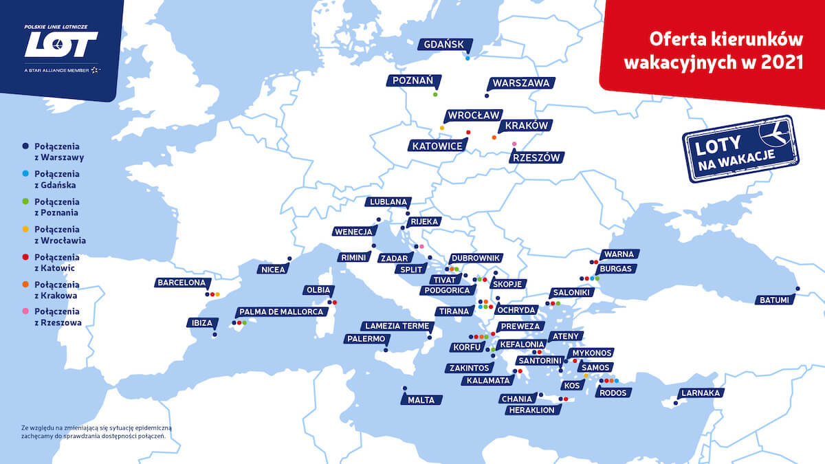 Powodów, dla których Grecja jest oczywistym kierunkiem podróży wymieniać można aż nadto: piękna natura, wyśmienita kuchnia i wino, gwarancja pogody, mili i gościnni ludzie, bogata kultura, mnogość zabytków, wspaniała tradycja i intensywne życie nocne to tylko niektóre z nich. W te wakacje dostępność greckich wysp i części lądowej będzie bardzo dobra między innymi dzięki połączeniom PLL LOT. Latem 2021 przewoźnik proponuje turystom z Polski połączenia do 14 greckich portów lotniczych. Będą to: Kos, Zakintos, Saloniki, Rodos, Kalamata, Santorini, Mykonos, Kreta – Heraklion, Chania, Kefalonia, Korfu, Ateny, Samos i Preveza. Do Grecji będzie można dostać się z sześciu portów w Polsce: nie tylko z Warszawy, ale i z Krakowa, Wrocławia, Poznania, Katowic i Gdańska.