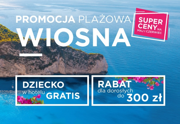Grecos ruszył z promocją „Plażowa Wiosna”. W wybranych hotelach klienci mogą zyskać do 300 zł rabatu na dorosłego oraz darmowy pobyt dla dziecka. Promocja obowiązuje na wyloty od 6 maja do 15 czerwca 2019.
