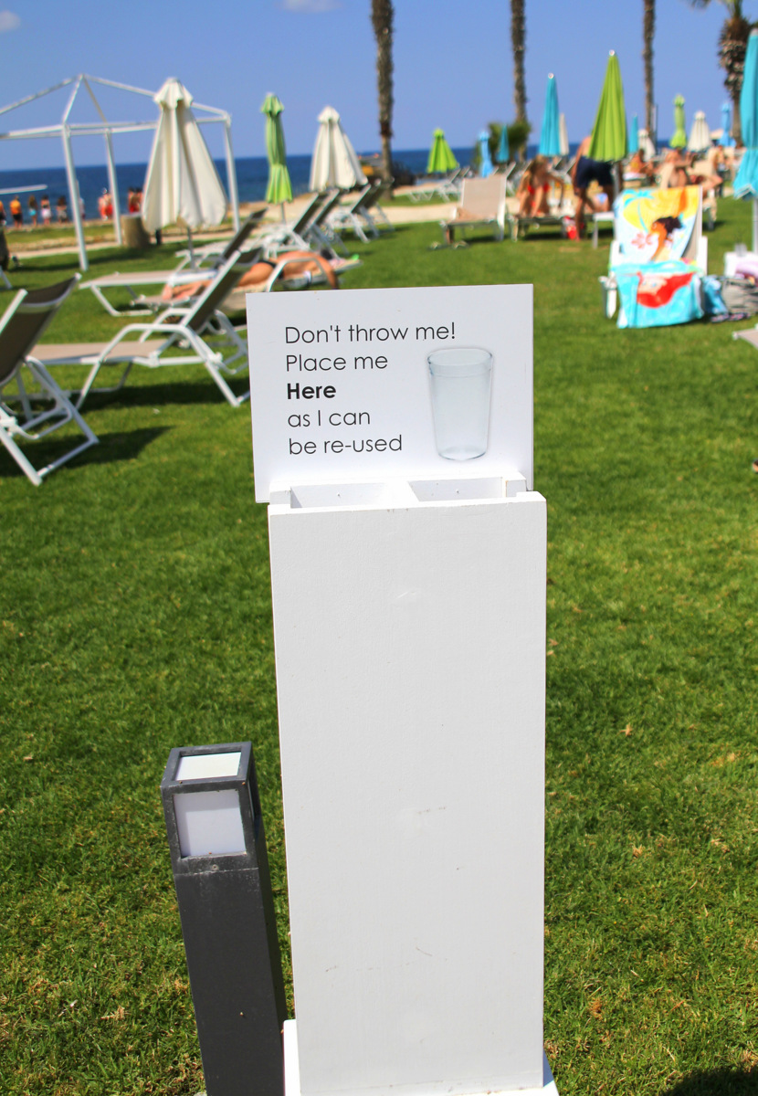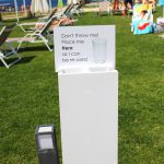 Ciekawostką na zewnątrz są specjalne “zbieracze” zużytych plastikowych kubków. Rozstawione są na trawniku wokół basenu. Można tam wstawiać kubki po napojach. Są one potem myte i ponownie trafiają do bufetów. Zbieranie i wstawianie kubków do “zbieraczy” (zamiast wyrzucania do kosza) jest dodatkową zabawą dla dzieci i lekcją ekologiczną.