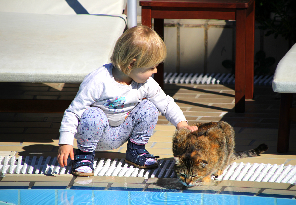 A dzieci lubią ten hotel jeszcze z jednego powodu – żyje tutaj (i to całkiem dobrze) kilkanaście kotów. Oswojone, zdrowe uwielbiają się łasić. A dzieci to lubią.