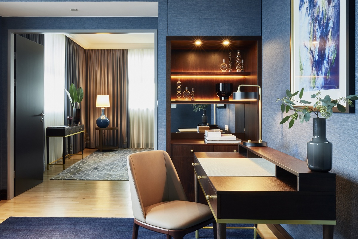 Postawiono na współczesny design zainspirowany architekturą miasta i nawiązujący do oryginalnej bryły budynku. Eleganckie wnętrza zachwycają zdecydowaną i wytworną kolorystyką, w której dominują odcienie granatu i turkusu z elementami starego złota. Postawiono również na klasykę, która została przełamana niebanalnymi elementami aranżacji np. poduszką z ręcznie haftowaną panorama Warszawy.