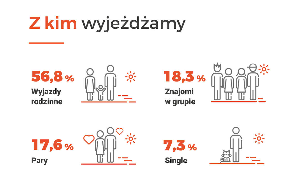 Średnia cena wyjazdu w Polsce wynosi 1915 zł, a prawie ¼ (24,33 proc) wykupiła pobyty poza hotelami. Jeśli chodzi o hotele, to największym powodzeniem cieszą się obiekty trzygwiazdkowe (25,90 proc.) i czterogwiazdkowe (21,95 proc.). Hotele dwugwiazdkowe wybrało 13,67 proc. a najdroższe hotele pięciogwiazdkowe 14,81 proc.