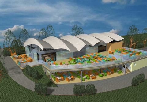 Nasza restauracja przypomina otwarty cyrk a dach przypomina żagle na wietrze. Dobrze wpisuje się w charakter Tatralandii, gdzie dominantą jest kompleks Tropical Paradise. Z tarasu na pierwszym piętrze nasi goście będą mieli widok na „liptowskie morze”. Specjalnością będzie kuchnia słowacka.”