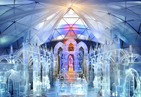 Kościół z brył lodu powstaje od kilku lat zawsze pod koniec listopada. Podobnie było w tym sezonie, kościół został otwarty 25 listopada 2016 roku. Tym razem 15 rzeźbiarzy wykorzystało 90 ton lodu w 720 blokach i wybudowało i niezwykłą świątynię w stylu spiskiego gotyku (o otwarciu czytaj TUTAJ). Kościół znajduje się w specjalnej kopule z systemem chłodzenia. Wstęp jest bezpłatny, wystarczy dostać się na Hrebienok.