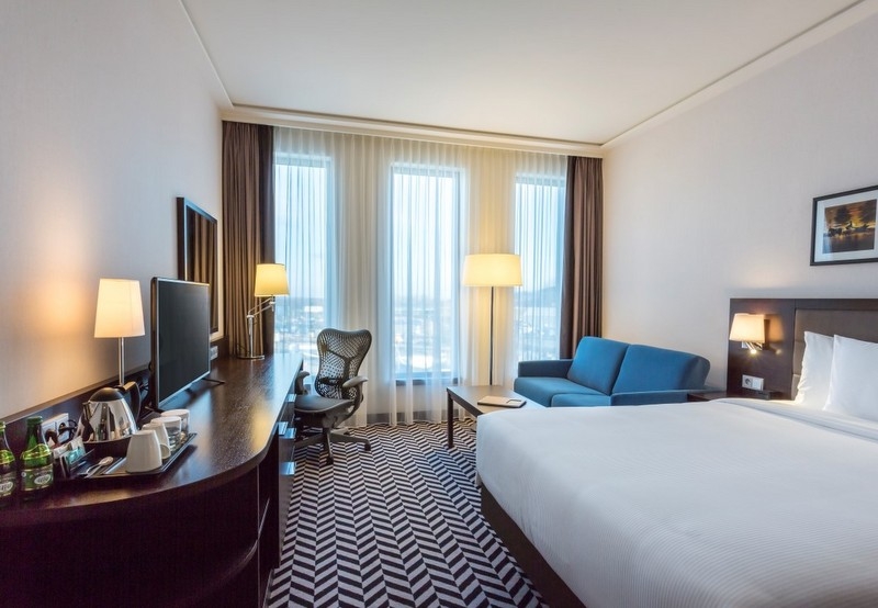 Czterogwiazdkowy hotel dysponuje 155 nowocześnie urządzonymi, całkowicie wyciszonymi pokojami i 10 salami konferencyjnymi o łącznej powierzchni 370 mkw. W obiekcie działa również całodobowe centrum biznesu i nowoczesny ośrodek fitness.