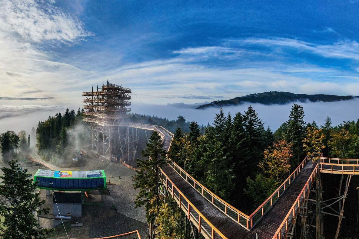 Otwarcie ponad tydzień temu największej obecnie atrakcji turystycznej Krynicy -Spaceru w Koronach Drzew oraz Wieży Widokowej – największej tego typu drewnianej konstrukcji na świecie, spowodowało, że w minioną niedzielę frekwencja odwiedzających była już zbliżona do tej z jesieni ubiegłego roku. Odwiedziło ją setki turystów.