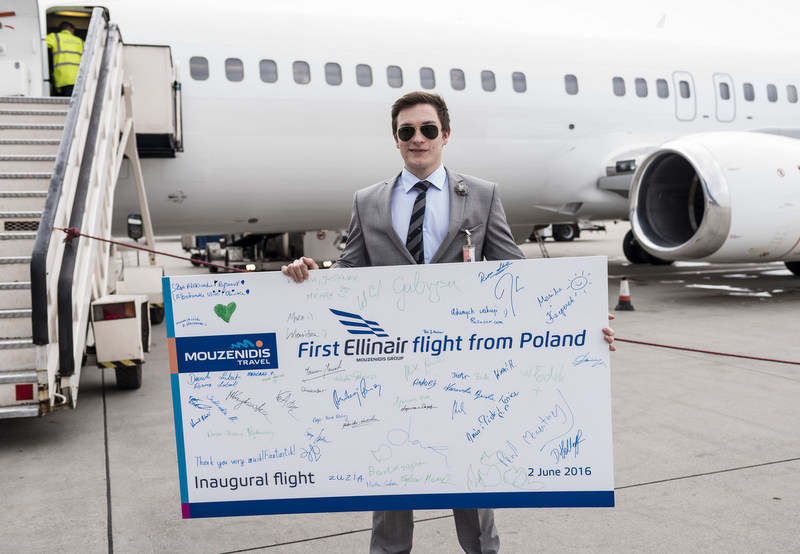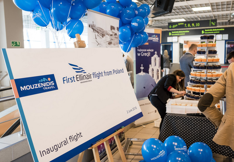 2 czerwca na warszawskim lotniku Chopina wylądowała pierwsza maszyna Ellinair. Po krótkim postoju odleciała do Katowic, gdzie czekała już na nią grupa powitalna. Samolot został przywitany salwą wodną, dla turystów odlatujących do Grecji Mouzenidis Travel przygotowało miłą niespodziankę.