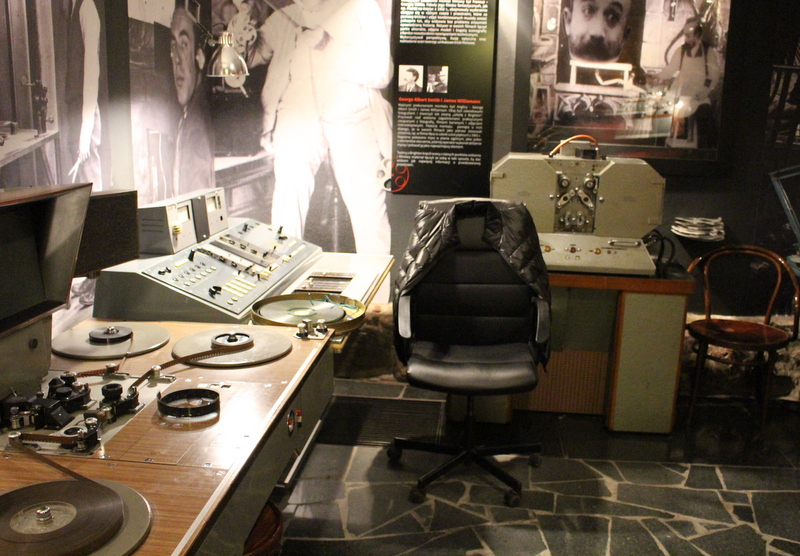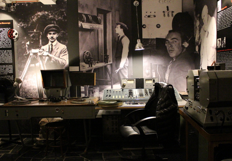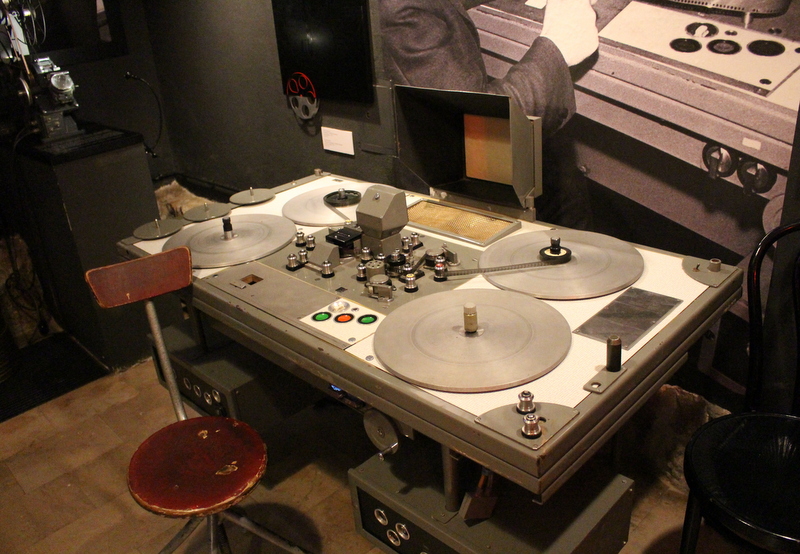 Dla mnie absolutną czarną magią był wizyta w pokojach montażowych, gdzie umieszczono wielkie stoły montażowe, służące do pracy jeszcze kilkanaście lat temu. Mnogość kółeczek, przekładni, suwaków, i Bóg wie czego jeszcze jest porażająca. Możemy obejrzeć urządzenia z lat 50., 60., 70. Na jednym z ekranów efekt pracy montażystów z roku 1901 – film “Podróż na księżyc.”
