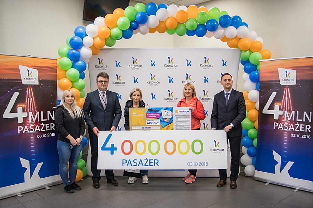 Czteromilionowego pasażera obdarowano prezentami. Górnośląskie Towarzystwo Lotnicze SA, zarządzającej Katowice Airport, ufundowało voucher umożliwiający bezpłatne skorzystanie z saloników business lounge, przejścia fasttrack i parkingu. Biuro podróży Rainbow Tours przekazało bon wakacyjny o wartości 6 000 zł na zakup dowolnej imprezy turystycznej lub biletu na lot czarterowy ze swojej oferty.