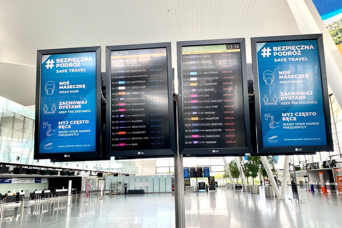 W związku z częściowym przywróceniem ruchu lotniczego wprowadzane zostały nowe procedury obsługi pasażerów. Do terminalu Portu Lotniczego Wrocław będą mogły wejść tylko osoby z ważnymi dokumentami podróży (karta pokładowa, bilet lotniczy) lub osoby korzystające z biur linii lotniczych czy wypożyczalni samochodów. Z osobą towarzyszącą będzie mógł wejść jedynie pasażer, który wymaga opieki (np. osoba z niepełnosprawnością). Wszystkie osoby przebywające w terminalu mają obowiązek zakrywania ust i nosa. Jeżeli ktoś zapomni maseczki, będzie mógł ją kupić przy wejściu na lotnisko.