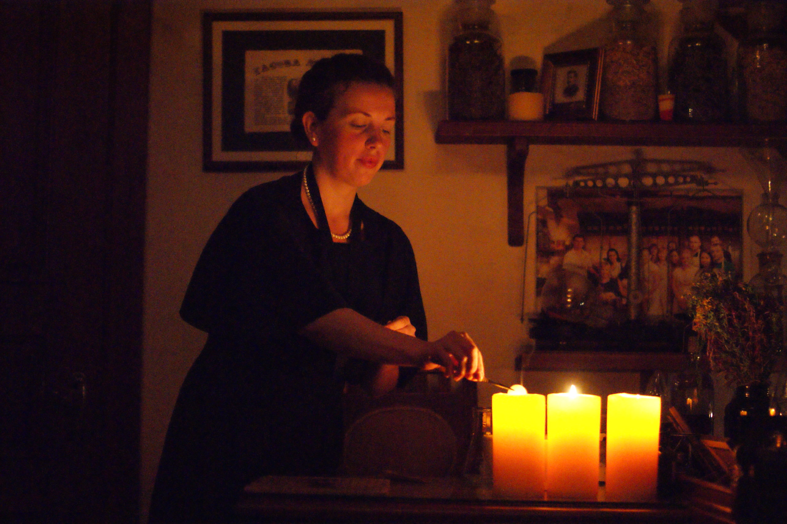 Goście oglądają tutaj film o historii aptekarstwa oraz samej apteki, która została założona w 1772 roku. Film na razie jest w języku polskim. Uczestniczą również w pokazie „sztuczek magicznych” aptekarki, w krótkim pokazie przygotowywania leków. Mogą też kupić m.in. eliksir szczęścia, tabletki od nieszczęśliwej miłości i inne wyroby.