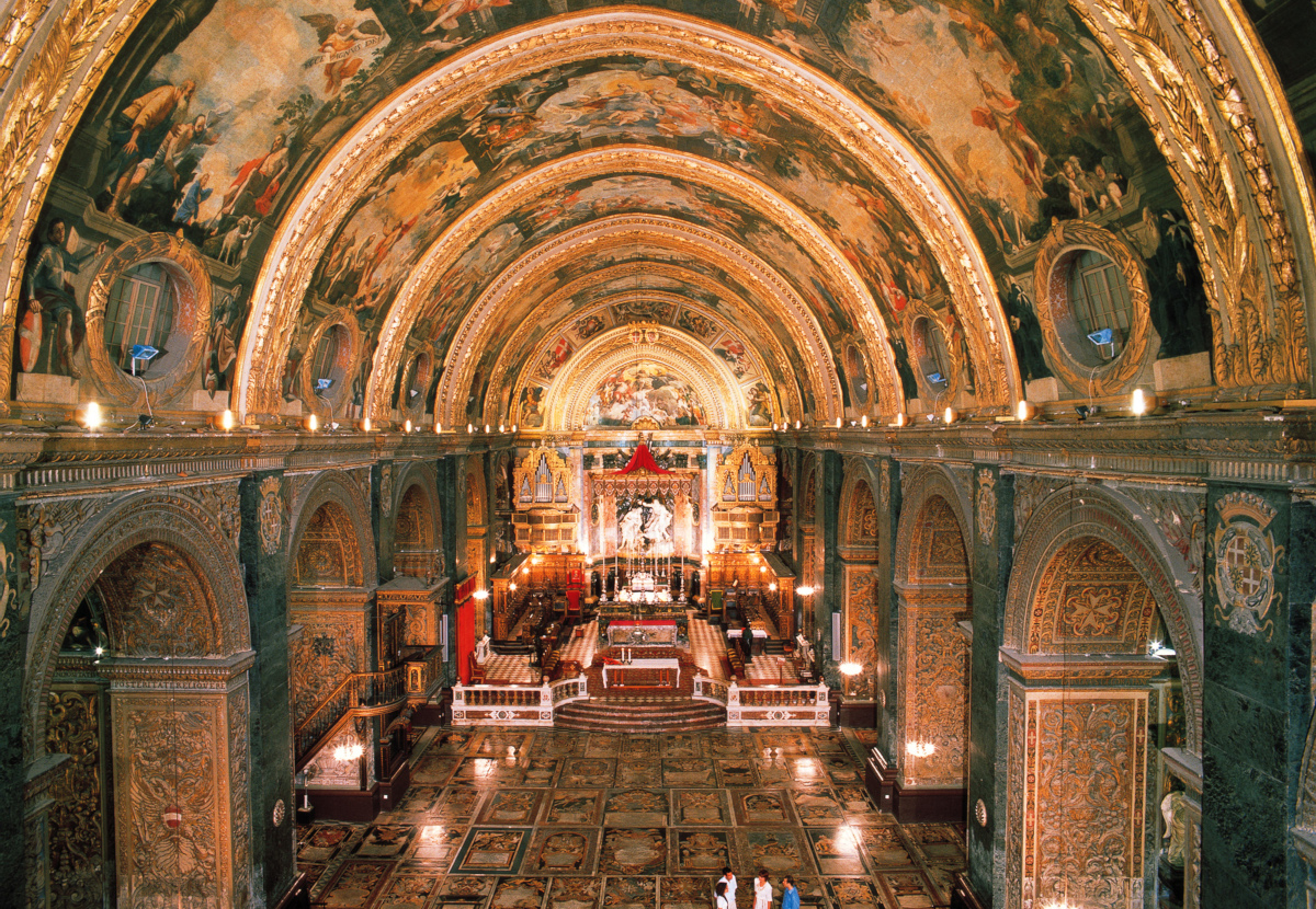 Świątynia została wybudowana w latach 1573-1578 jako kościół zakonu joannitów. Całe wnętrze pokryte jest ornamentami i malowidłami. Najważniejszym elementem w Oratorium jest słynny obraz Caravaggia – Ścięcie św. Jana. Ogromnych rozmiarów płótno zajmuje niemal całą ścianę. Przy wejściu, zwiedzający dostają elektroniczne przewodniki, przy użyciu których mogą w wybranym języku posłuchać o tym co znajduje się w danej kaplicy, co przedstawiają obrazy i rzeźby.