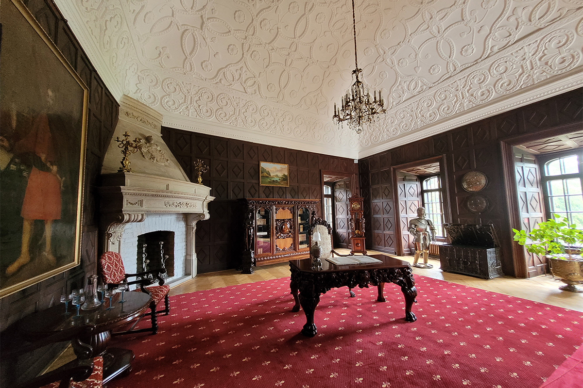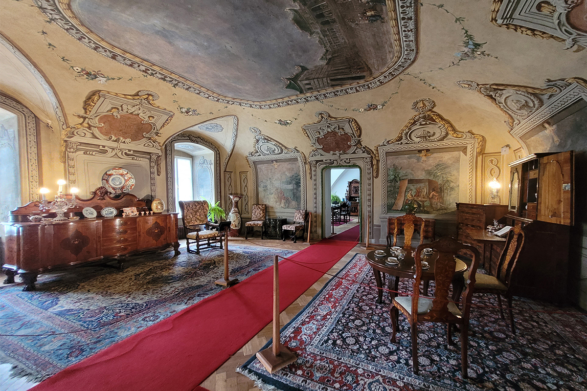 Ekspozycja historii sztuki umieszczona jest w 18 pomieszczeniach renesansowego pałacu. Oryginalne antyczne meble i akcesoria służą do przedstawienia wystroju wnętrz kultywowanego przez szlachtę od epoki renesansu do XX wieku. Sale zdobią obrazy olejne i portrety stworzone przez krajowych oraz europejskich mistrzów z XVII-XIX wieku, a także mieszczą kolekcie historycznej broni, zegarów i porcelany.