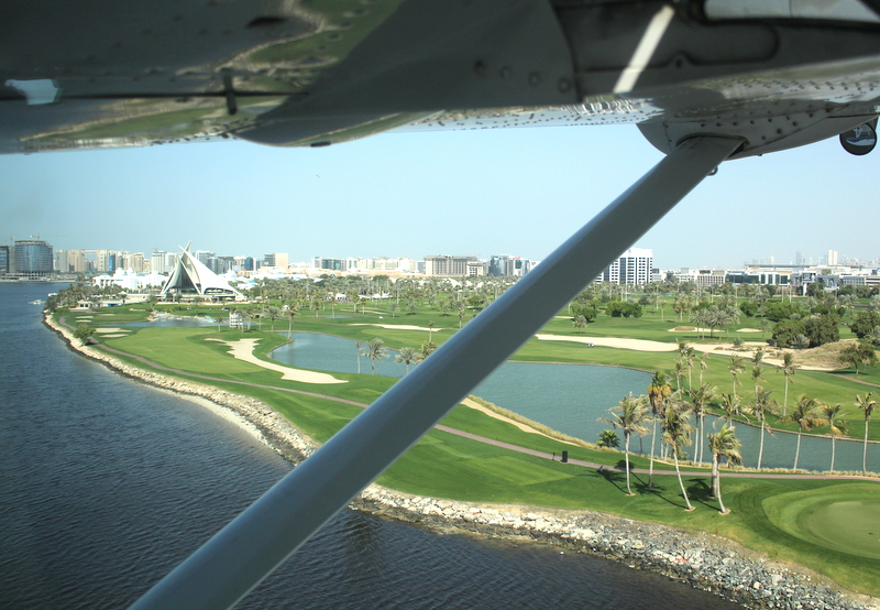 Lot trwa 40 minut. Hydroplan zabierający 8 osób startuje z przystani przy polu golfowym Dubai Creek Golf. Przed lotem odbywa się kilkuminutowy pokaz z mapą Dubaju, przed wejściem do samolotu trzeba oddać wszystkie szklane naczynia i ostre przedmioty. Uwaga! Trzeba mieć przy sobie paszport, normalnie, jak na lotnisku.