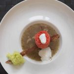 II miejsce: Tyskie Łobuz – Zespół Szkół nr 7 w Tychach (- Batonik z musem i kremem żurkowym, – Zupa piwna z twarogiem i chipsem z boczku, – Królik sous vide, sos rabarbarowy, puree z bobu, szparagi z masłem palonym.)
