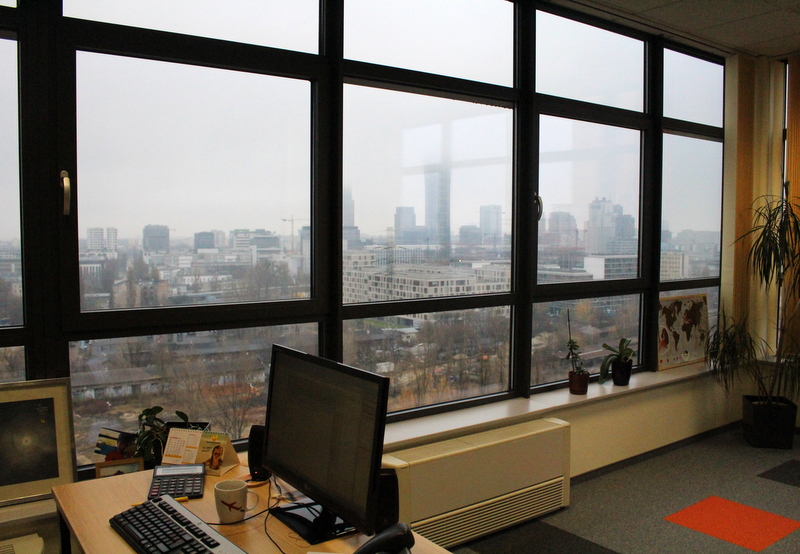 Prezes biura, Krzysztof Piątek podkreślił: “Przeprowadzka to nie była nasza fanaberia. Naprawdę w biurze na Duboisa była nam dobrze. Jednak budynek typu “Lipsk”, wybudowany chyba jeszcze w latach 70-tych ubiegłego wieku będzie w najbliższym czasie rozbierany. Więc wizja kuli betonowej rozbijającej biurowiec z naszą siedzibą zmusił nas do poszukiwań nowego adresu. Tutaj długo negocjowaliśmy i mamy do dyspozycji podobną powierzchnię biurową, ok. 800 metrów, za podobną cenę. Komfort jest dużo większy a i przyjemność oglądania Warszawy jest dodatkowym bonusem. Przy dobrej pogodzie mamy widok praktycznie od Świątyni Opatrzności do wieżowców na północy stolicy.”