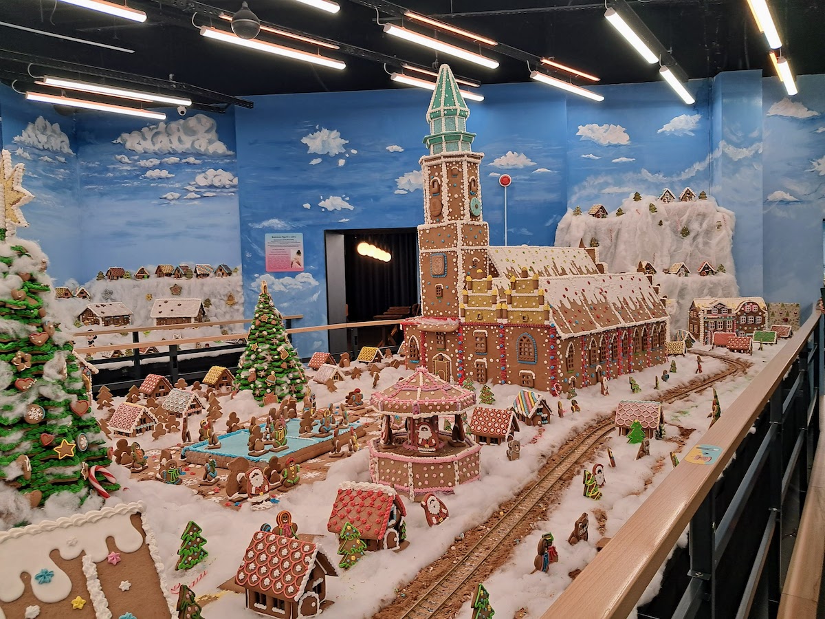 Akurat trafiłem na dostępną tylko do 2 marca 2025 roku jedyną na świecie makietę Miasto z Piernika, przepięknie przyozdobioną wielokolorowym lukrem. Już przy wejściu wyczuwa się oszałamiający zapach 50 kg korzennych przypraw i 200 kg miodu, które dodano do ponad 1600 kg specjalnie przygotowanego ciasta. Od rana tłumy zwiedzających – w tym miejscu czas się nie liczy i niektórzy spędzają w Kolejkowie nawet 3-4 godziny.
