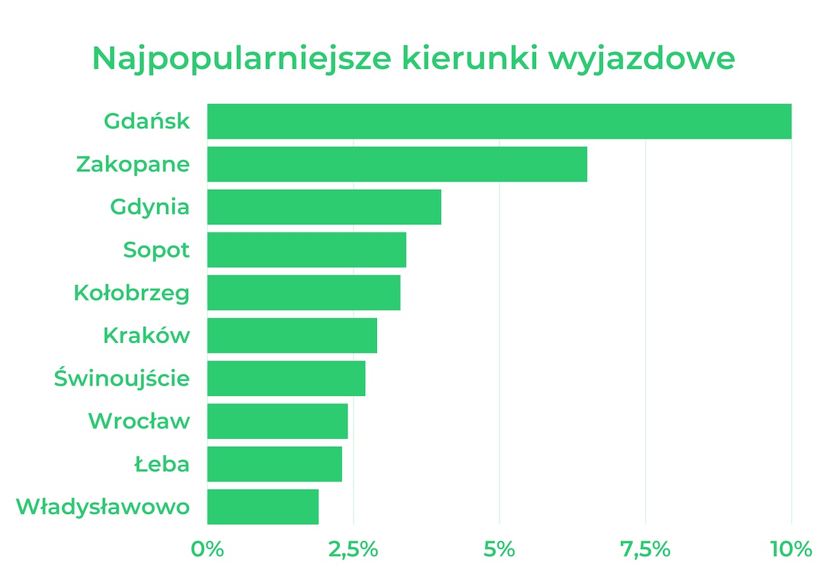 Wśród najpopularniejszych miejscowości prym wiedzie Gdańsk, gdzie nocleg spędził co dziesiąty turysta. Tuż za nim znalazło się Zakopane. Wśród miejsc odwiedzanych najczęściej przez Polaków w trakcie wakacji znalazły się: Sopot, Kołobrzeg, Gdynia, Łeba, Świnoujście czy Kraków. Jednak spora część turystów zdecydowała się na kierunki mniej popularne, by odpocząć z dala od zgiełku. Po części jest to skutek minionej pandemii. Pozwoliło także na znaczne zredukowanie kosztów pobytu i wypoczynek w atmosferze spokoju.