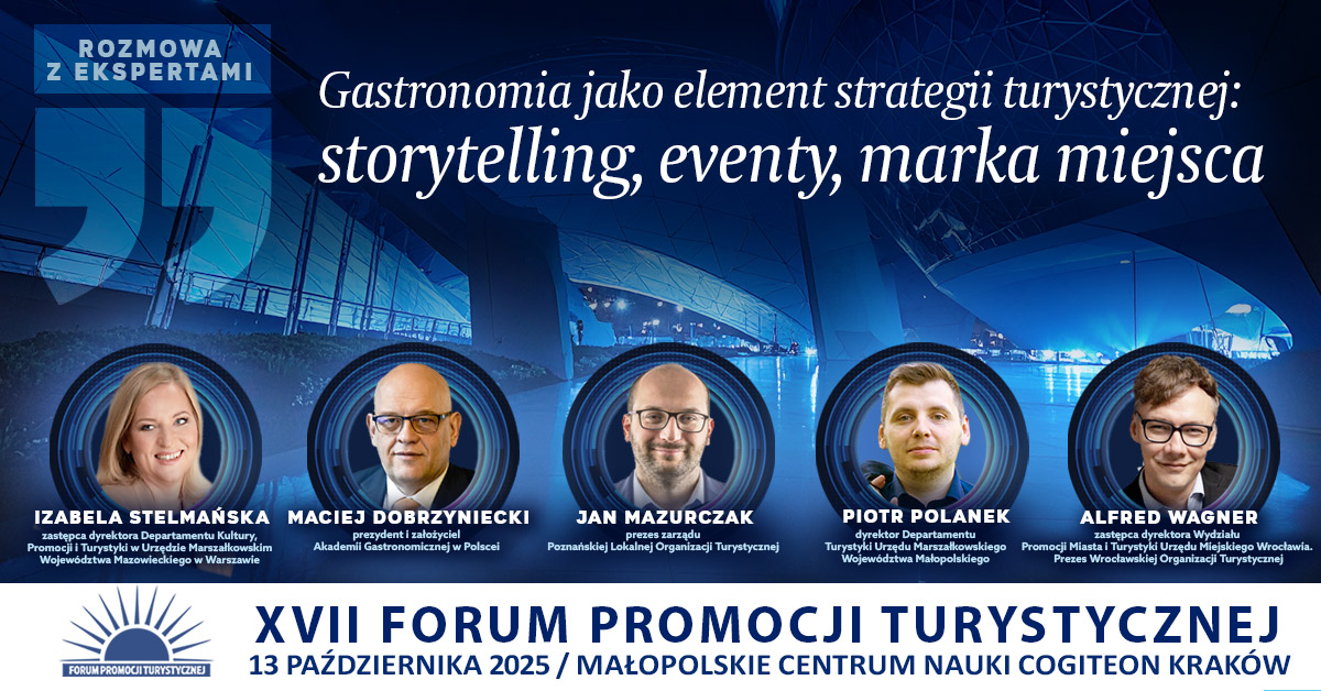 W centrum uwagi znajdzie się rozmowa z ekspertami zatytułowana: „Gastronomia jako element strategii turystycznej – storytellingi, eventy, marka miejsca”. Wezmą w niej udział znani specjaliści z branży turystycznej:
