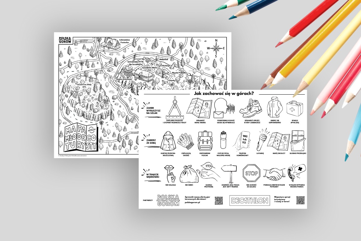 To kolorowanka, która nie tylko bawi, ale także uczy. „Mapa Młodego Turysty” wprowadza dzieci w świat szlaków górskich przebiegających wokół konkretnych górskich schronisk. Jest to zarówno przewodnik, jak i kreatywna kolorowanka, która zachęca najmłodszych do odkrywania piękna natury i nauki o terenie. Dzieci mogą samodzielnie wybierać, które elementy chcą pokolorować, a jednocześnie poznają nowe miejsca i zasady bezpiecznej turystyki.