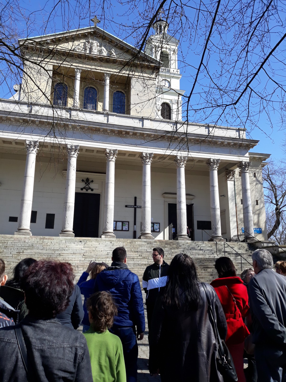 Pokrzepieni kubkiem gorącej czekolady ruszamy dalej. Dowiadujemy się więcej o historii Pragi, o genezie nazwy tej dzielnicy, o zabudowie, o tym dlaczego to właśnie tutaj znajduje się największe zagęszczenie przedwojennej tkanki miejskiej w pierwotnym kształcie. Mijamy Dworzec Warszawa Wschodnia i docieramy do Kawęczyńskiej, gdzie znajdziemy jedną z najpiękniejszych świątyń w mieście.