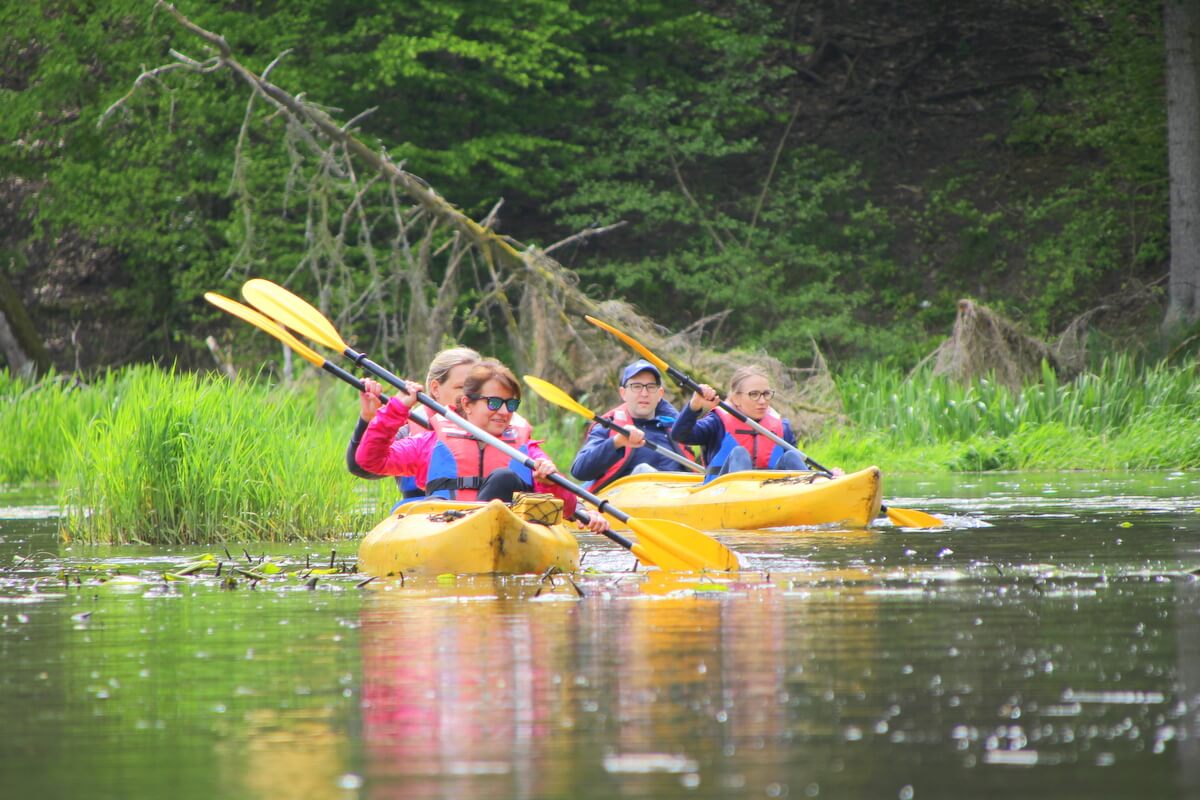 Pogoda dopisała i uczestnicy spływu spróbowali swych sił na jednej z atrakcji turystycznych stolicy Warmii. Rzeka Łyna jest idealna na początek sezonu kajakowego – płynie przez urozmaicone krajobrazy, nie za trudna, ale i nie za łatwa (przenoski, przeszkody z powalonych drzew, labirynt trzcinowy).