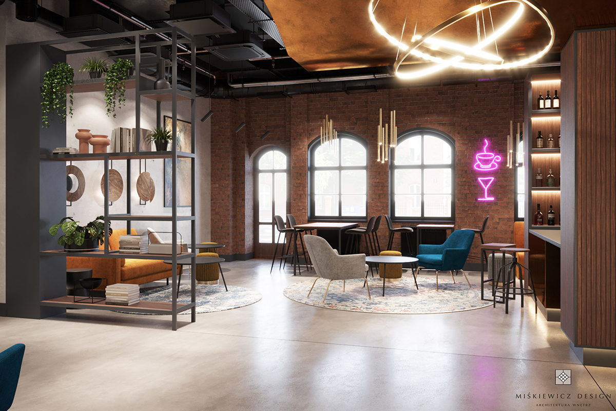 i ducha historii obiektu. Charakteryzuje się wysmakowanym, lekkim eklektyzmem, industrializmem, zabawą kolorem i formą